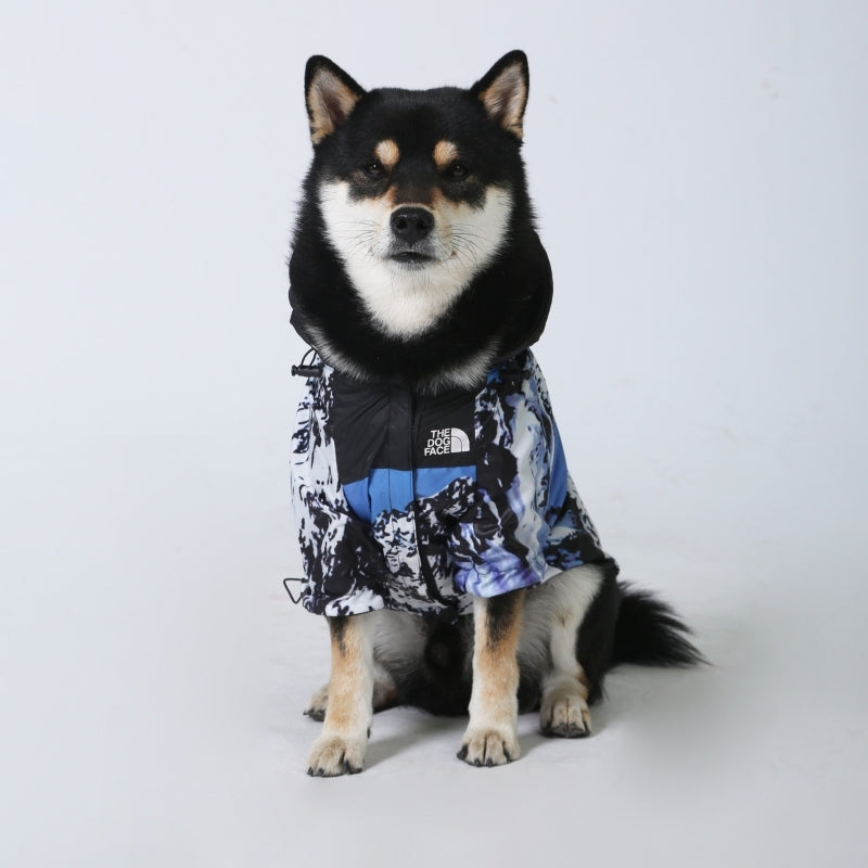 Mountain-print dog anorak with a lightweight hooded shell, sleeve detail, and adjustable hem toggles for a snug, trail-ready fit. Bold graphics keep pups adventure-chic on chilly, breezy walks.