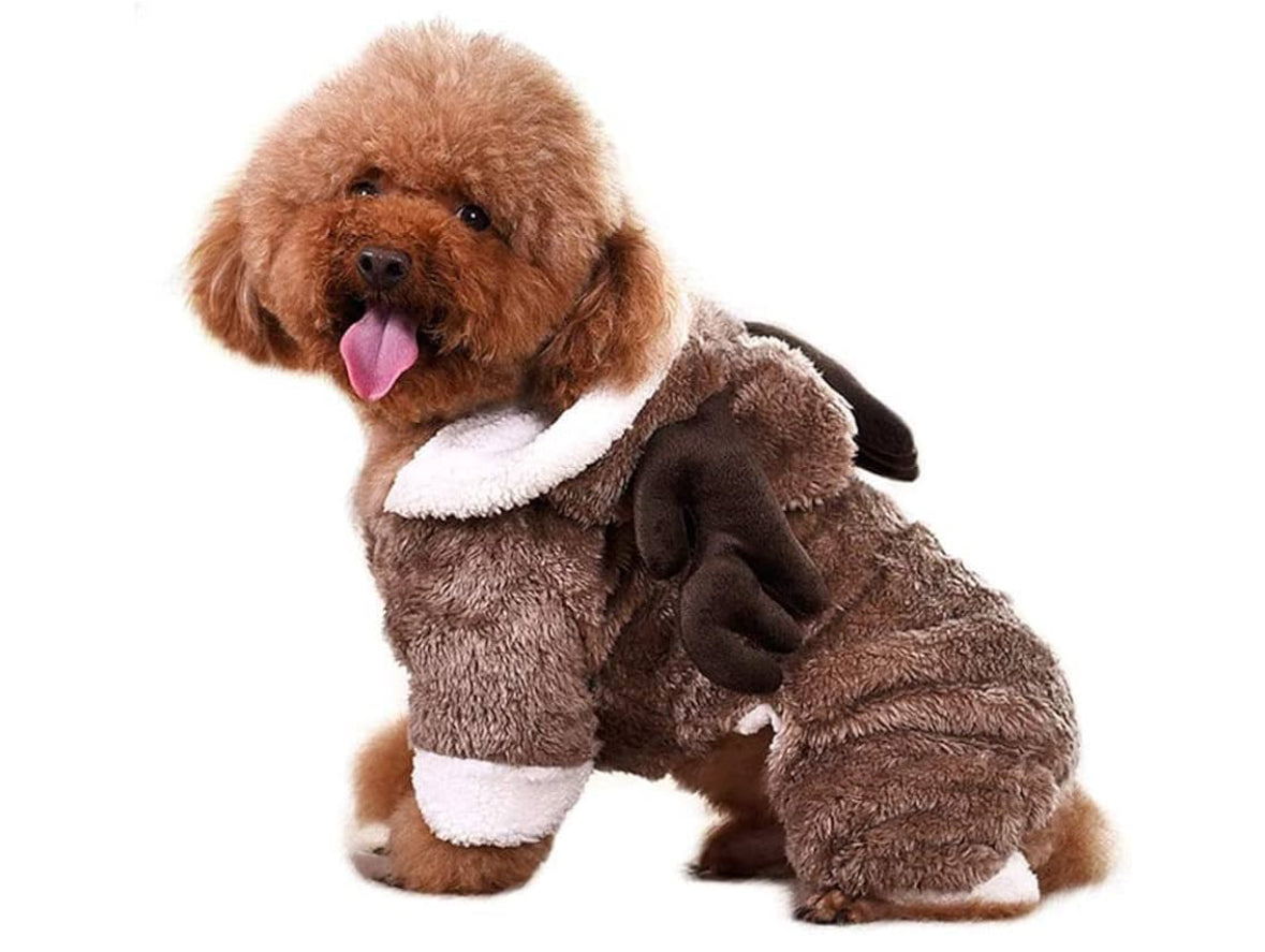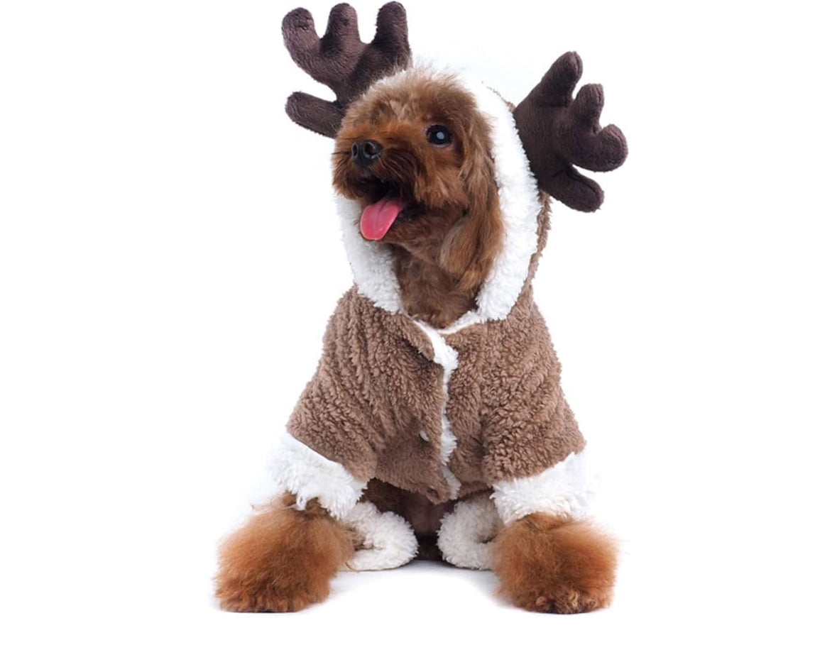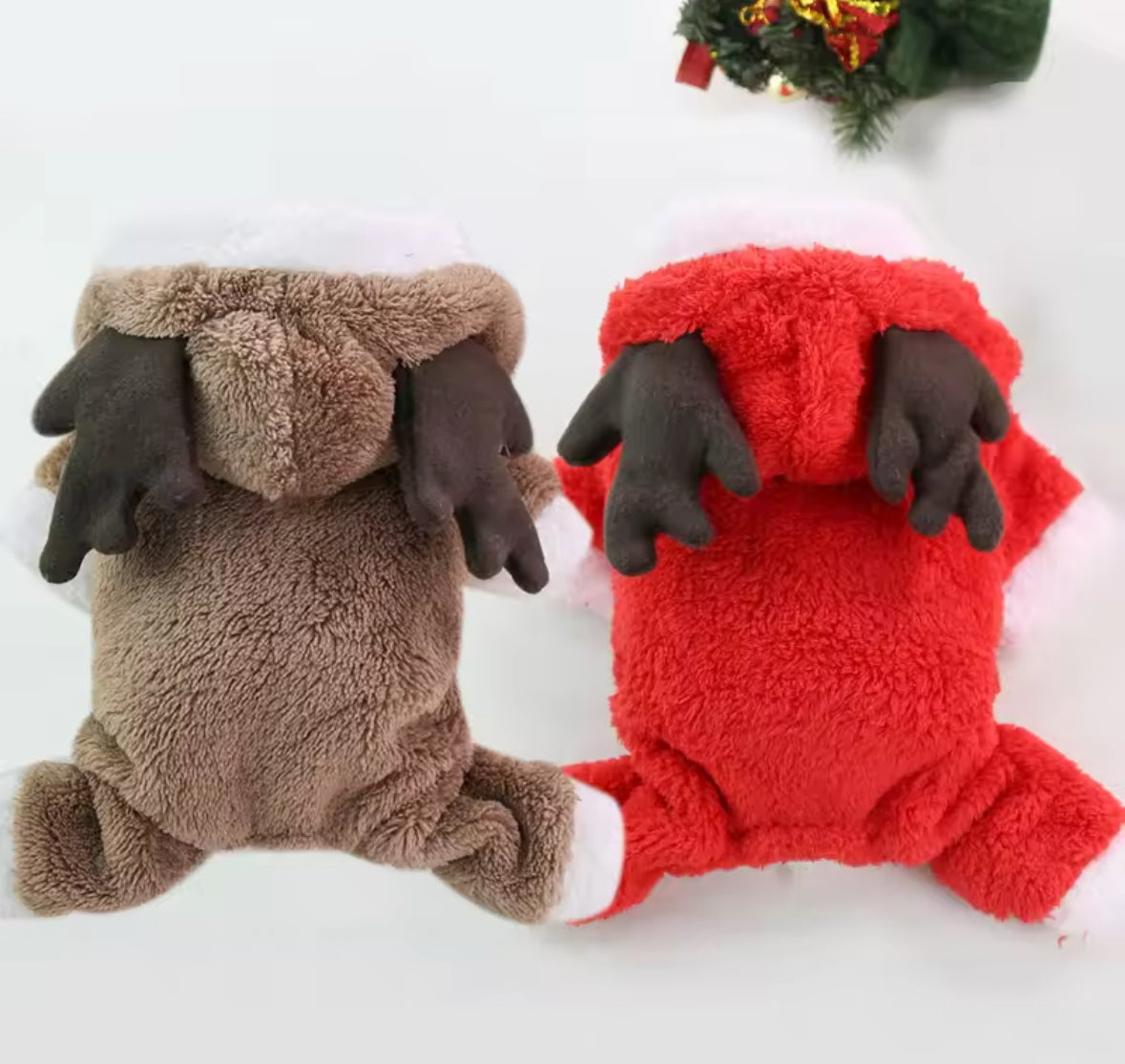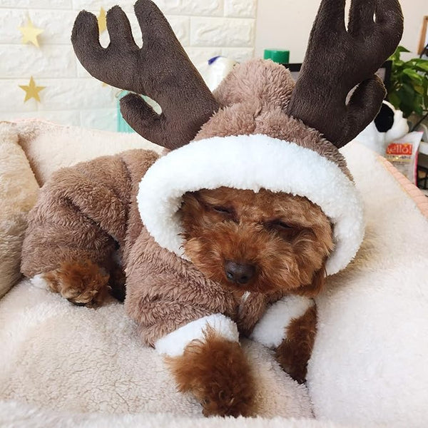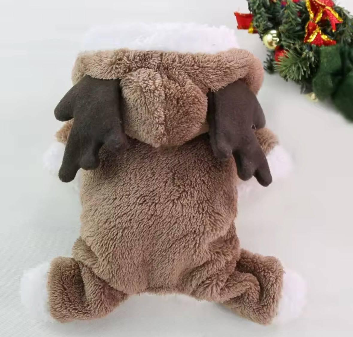 Transform your dog into the star of the autumn and Christmas season with our cozy Reindeer Hooded Sweater! Made from soft, warm fabric, this adorable sweater features playful reindeer antlers on the hood to capture the festive spirit. Perfect for chilly walks, photo sessions, or just keeping your pet snug and comfortable during the colder months. The sweater is easy to put on and take off and comes in various sizes to ensure a great fit for dogs of all shapes and sizes.