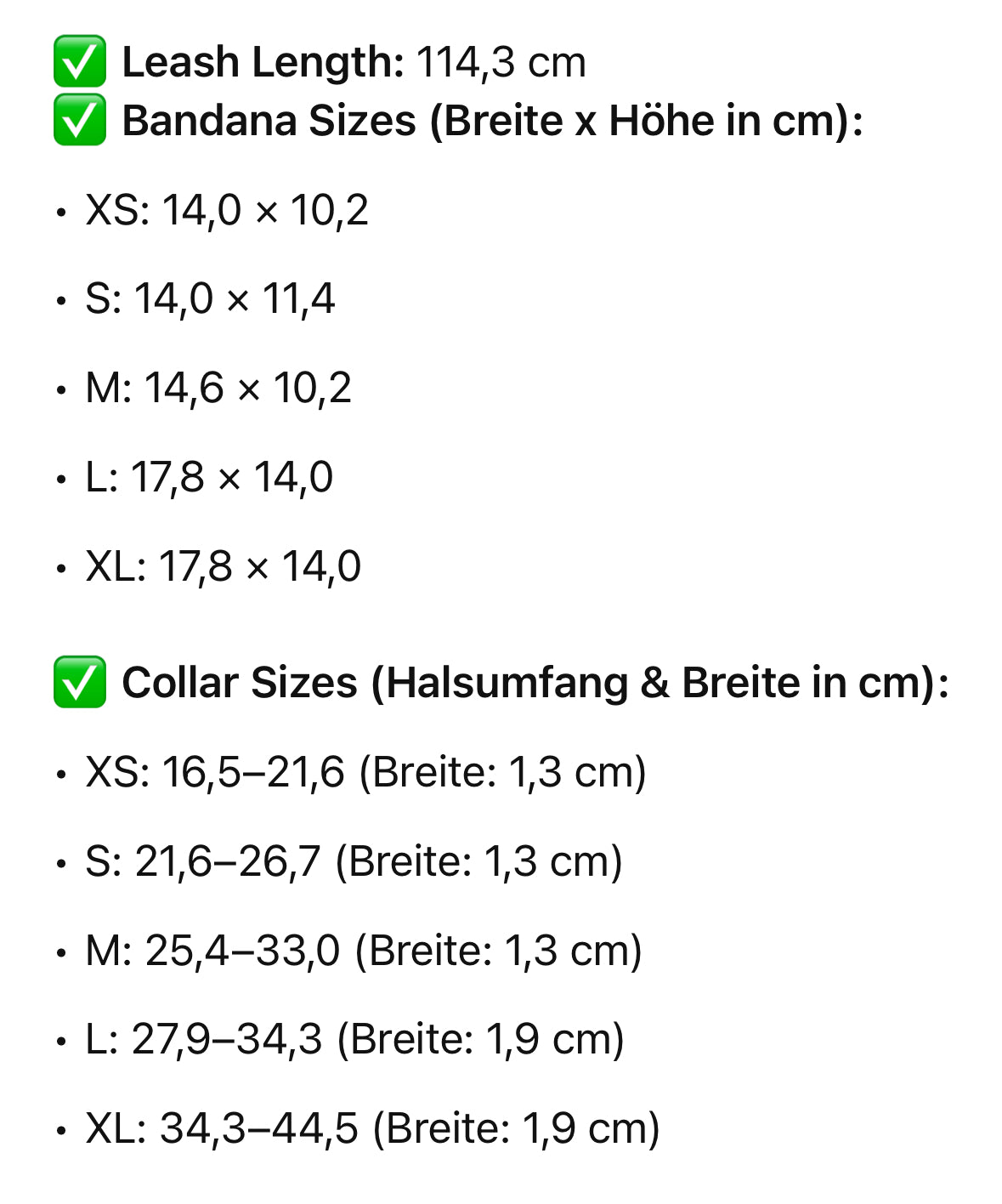 S neck: 8.5in- 10.5in Collar & Leash Width: 0.5in