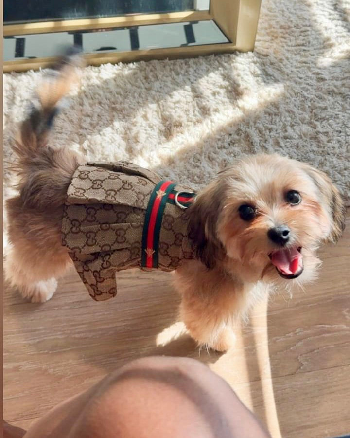 This sophisticated dog dress combines classic style with practicality. Crafted from a high-quality, non-stretch fabric, it offers a structured fit that holds its shape beautifully. The dress features a sleek, double D-ring design, making it perfect for attaching a leash or ID tags. For easy on and off, it’s equipped with a secure Velcro closure, ensuring a snug and comfortable fit for your pup.