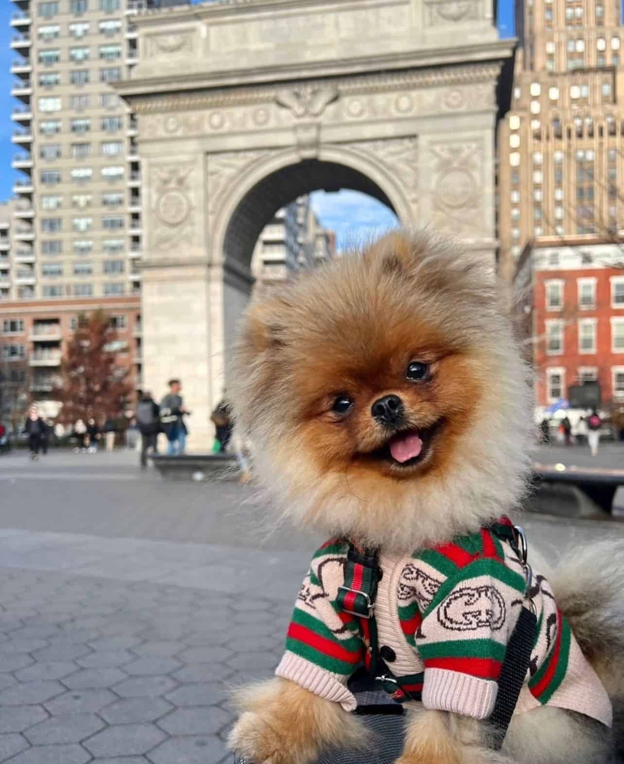 Soft knit pet sweater, featuring: 100% cotton. Huey (Frenchy) has a chest measurement of 19" and wears size L.