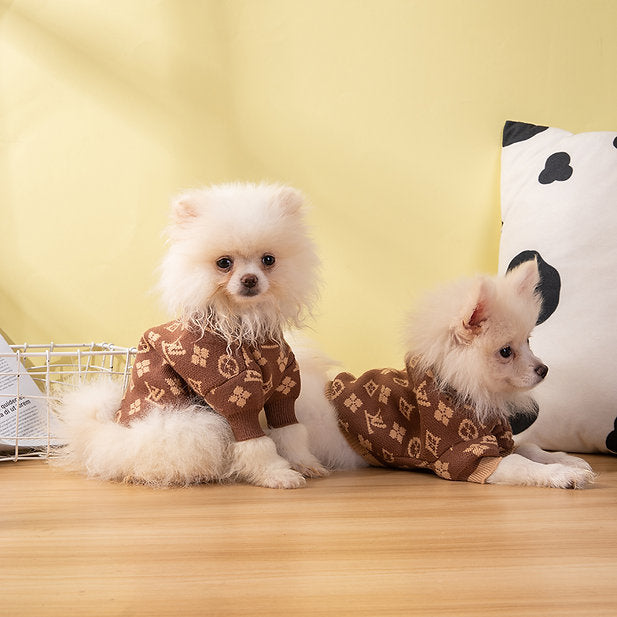This two toned monogram print knit sweater, is the perfect piece to add to any pets wardrobe.