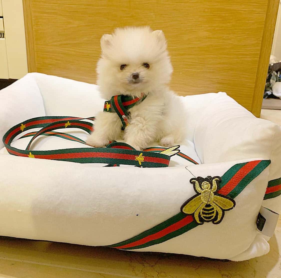 Add a high-fashion vibe to your walks with the dog harness and leash set featuring the signature G- Bee!